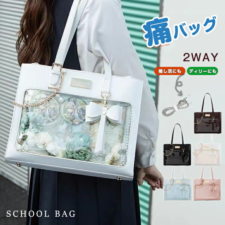 痛バッグ 痛バ 大容量 スクールバッグ ショルダーバッグ スクバ 合皮 見せバッグ 斜め掛け A4 可愛い ぬいぐるみ 缶バッジ 透明 バッグ 推し活 おたく 地雷系 通学カバ 手提げ