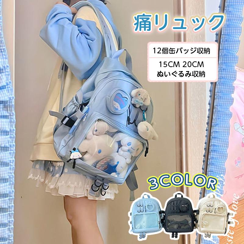 痛バッグ 3way リュック リュックサック 大きめ おしゃれ デイパック高校 韓国 缶バッチ ファッション大容量缶 見せバッグ 大容量 人形収納 推し活 ヲタ活 イベント用 かわいい 通 ぬいぐるみ