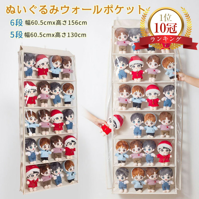 ぬいぐるみウォールポケット ぬいぐるみ 収納 層高12 15 18cmディスプレイ ウォールポケット コレクションケース 6段収納ケース コレクション 見せる収納 小物 収納ボックス