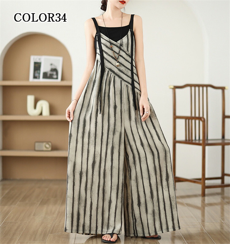 全6色 オールインワン レディース サロペット オーバーオール サロペットパンツ ワイドパンツ ガウチョパンツ リゾート 体型カバー お出かけ 着痩せ 春夏