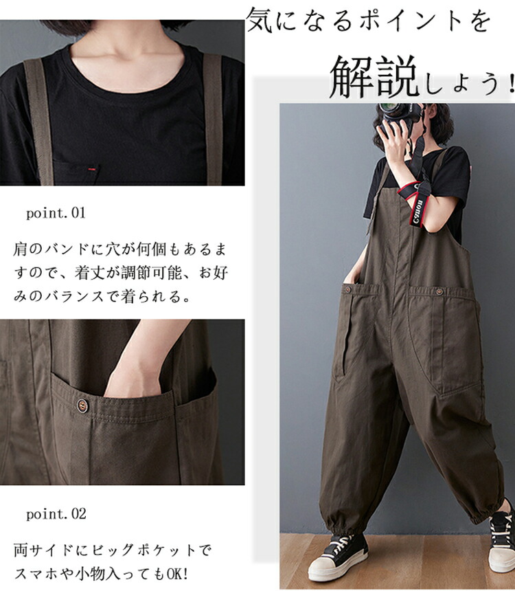 くすみカラーのお洒落サロペット 40代 50代 オーバーオール お洒落ツナギ レディース つなぎ オールインワン ジャンプスーツ ベージュ サンド サロペット カーキ