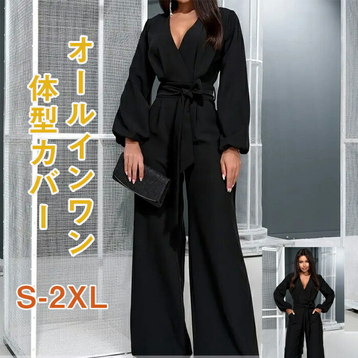 レディース オールインワン パンツドレス パンツ ドレス パーティードレス セットアップ オーバーオール オールシーズン サロペット スーツ ワイド 着痩せ 綺麗 フォーマル