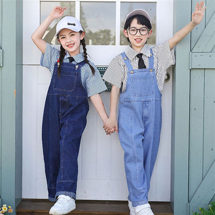 100cm-180cm 単品 ダンス衣装 オーバーオール カジュアル デニム サロペット シャツ ジュニア 子供服 無地 女の子 男の子 幼稚園 小学生 中学生 子供 服 おしゃれ ガールズ