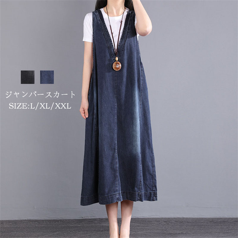 ジャンパースカート デニムジャンパースカート デニムスカート デニムサロペット オールインワンワンピース 大きいサイズ ワンピ 体型カバー ゆったり カジュアル デニムワンピース