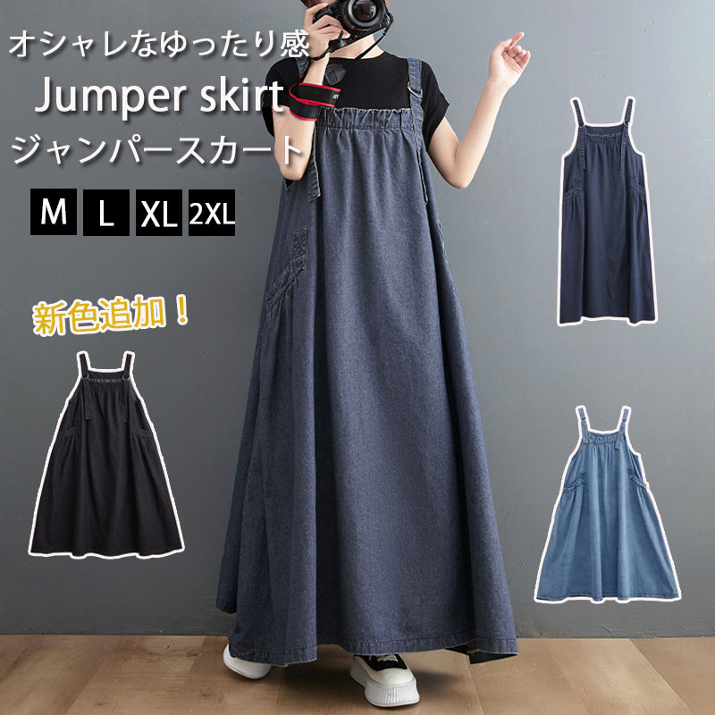 ジャンパースカート レディース デニム サロペットスカート キャミワンピース 重ね着 ゆったり キャミワンピ ロングワンピース オールインワン ジャンパー サロペット 無地 マキシ丈 オーバ スカート