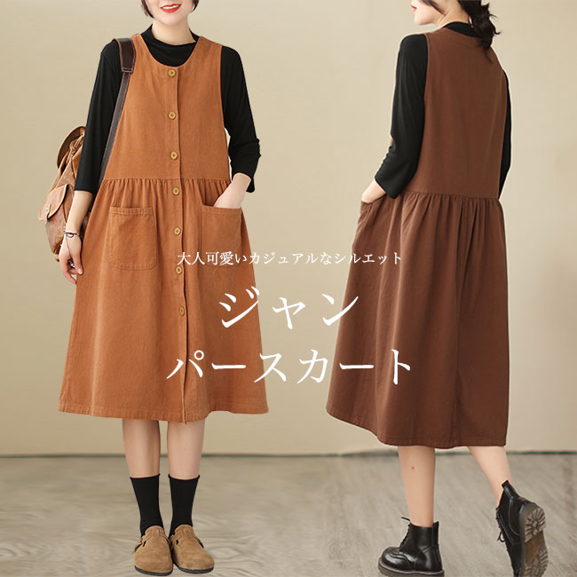 体型カバーのカジュアルファッションアイテム レディースジャンパースカート