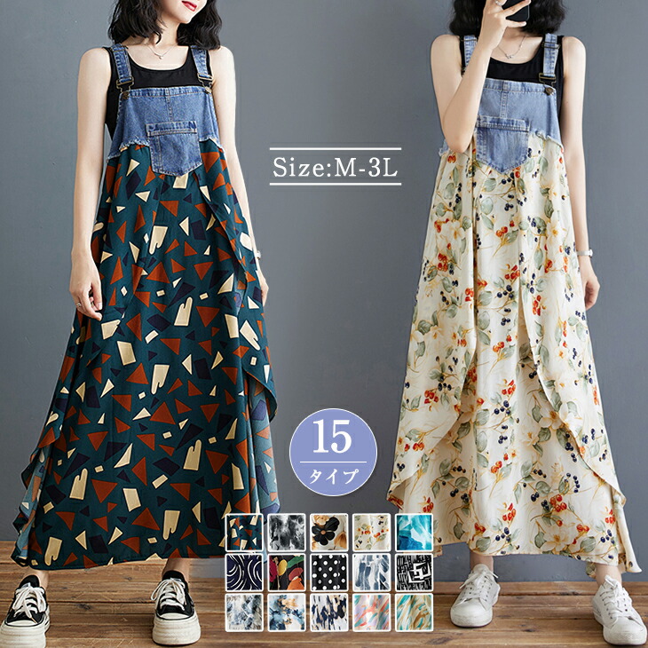 選べる15タイプ 切り返しデザイン デニムサロペット ワンピース ロング レディースファッション ゆったり 楽ちん オーバーサイズ 体型カバー マタニティ カジュアル 春 夏 秋 ReRe
