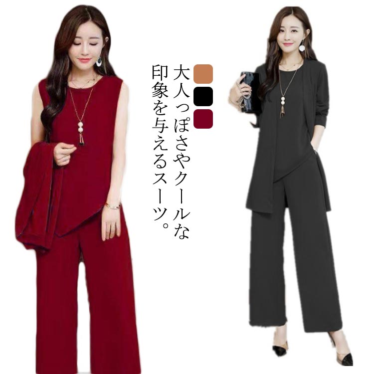 体型カバー 母親 レディース セットアップ ママスーツ 3点セット オシャレ ジャケット おしゃれ 着痩せ 通勤 OL キレイめ パンツスタイル 20代 30代 40代 50代 オフィス 2次会 謝恩