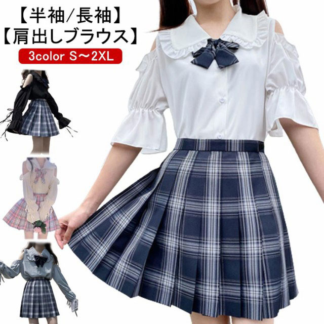 肩出し オフショルダー ビッグカラー フリル キャンディースリーブ ガールズ 夏 ブラウス かわいい レディース 無地 半袖 長袖 トップス パフスリーブ 女子 ゆったり ロリータ 中学生 女子高生