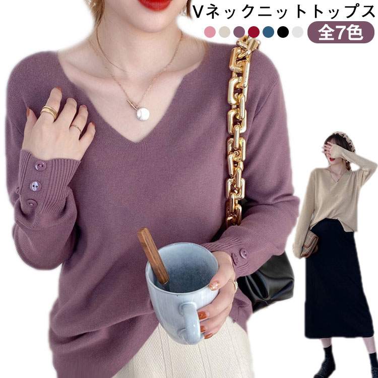 Vネックニットトップス 長袖 薄手 トップス セーター 韓国風 やさしい雰囲気 Vネック ゆるニット ニット プルオーバー ニットソー 春 秋 おしゃれ 女性 オフィス キレイめ 全7色