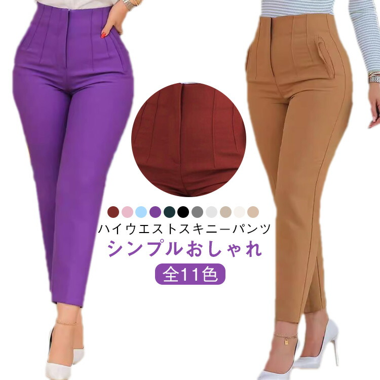 全11色 スキニー パンツ ハイウエスト テーパードパンツ スラックス 通勤パンツ シンプル 無地 ボトムス 9分丈 春 夏 秋