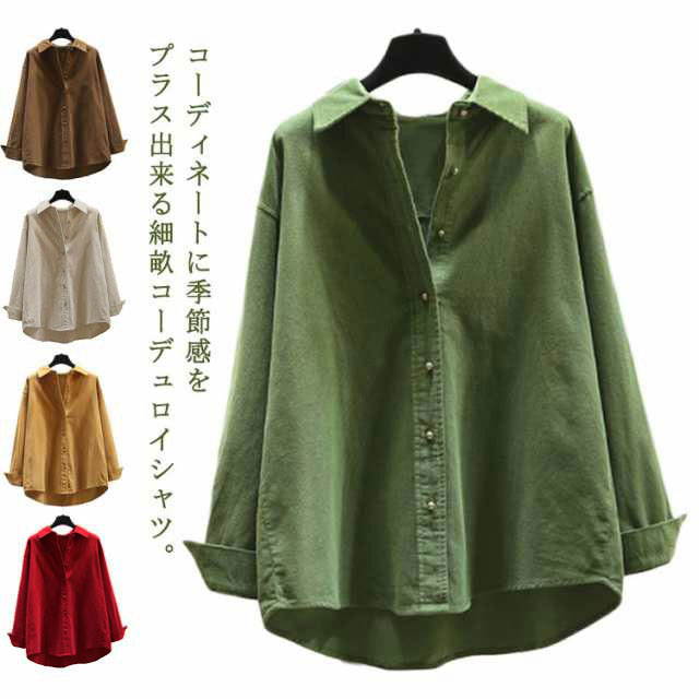 コーデュロイ シャツ レディース 長袖 トップス オーバーサイズ ゆったり 体型カバー 着瘦せ 秋 冬 長袖シャツ ブラウス ネルシャツ 起毛 厚手 あったか 羽織り コーデュロイシャツ 細畝 秋服