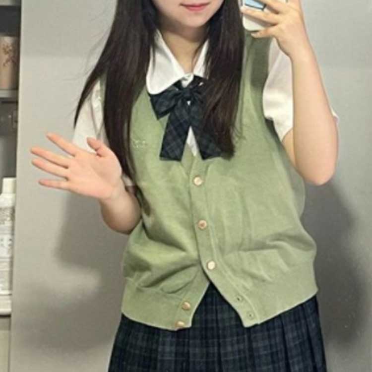 ~2 スクールセーター 前開き ネック 無地 シンプル 重ね着 学生 可愛い