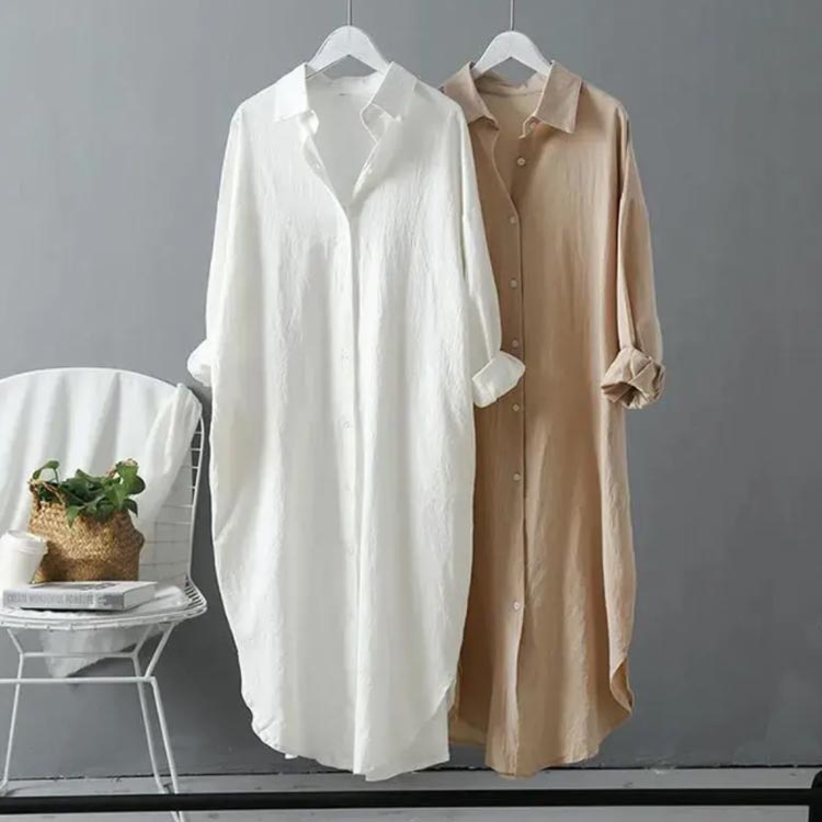 ゆったり ロングシャツ レディース 長袖 お洒落 無地 ブラウス シャツワンピース ロング丈トップス チュニック 体型カバー カジュアル キレイめ おしゃれ シンプル 着瘦せ 大人 女性 春