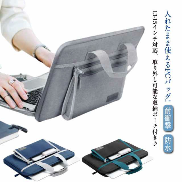 パソコンケース 入れたまま使える パソコンバッグ 耐衝撃 防水 手提げ 収納ポーチ付き 取り外し可能 シンプル 男女兼用 おしゃれ 13インチ 14インチ 15インチ 通気性 無地 ビ