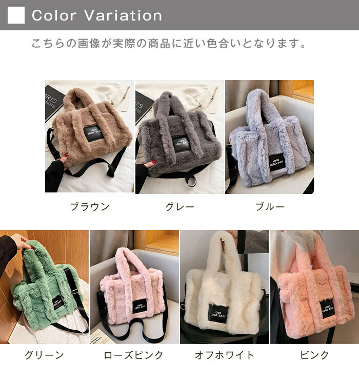 ファーバッグ ショルダー トートバッグ バッグ レディースバッグ トートバッグ 37%Off ブラウン グレー ブルー グリーン オフホワイト ピンク ローズピンク