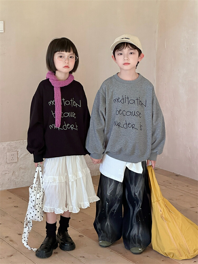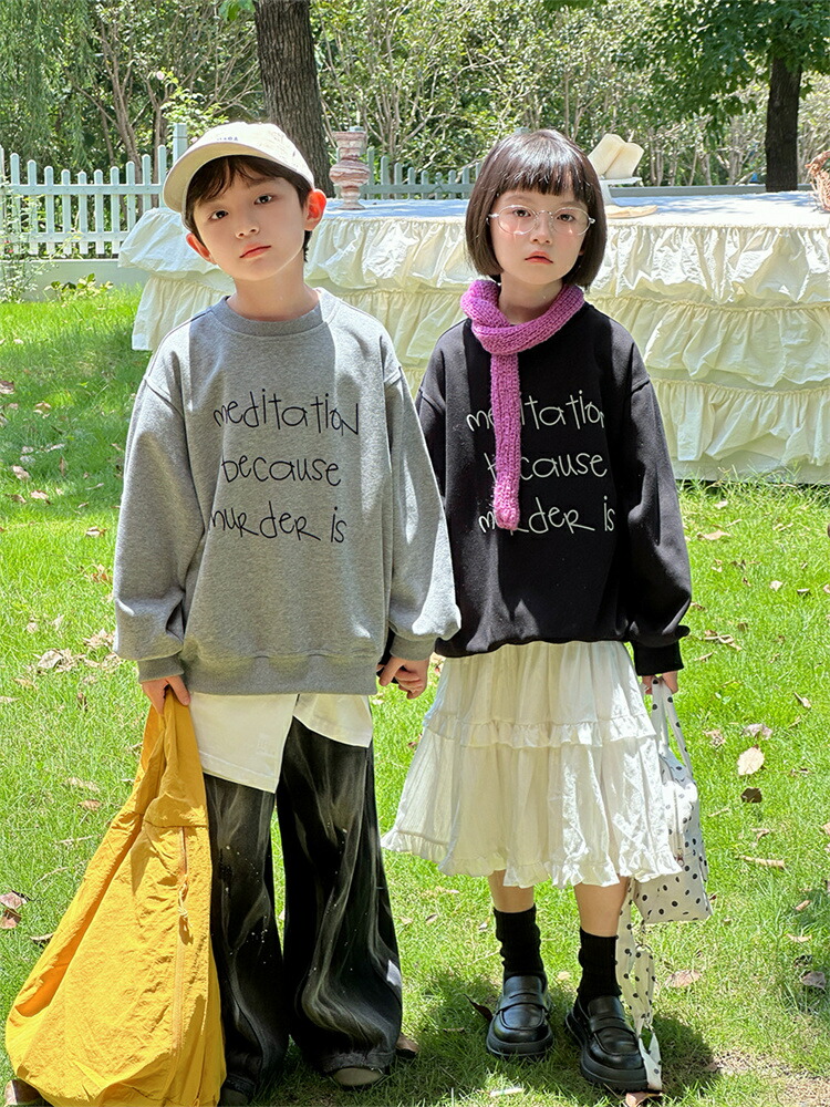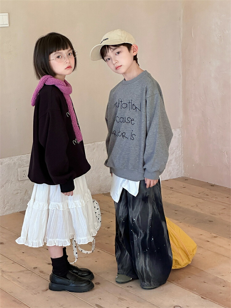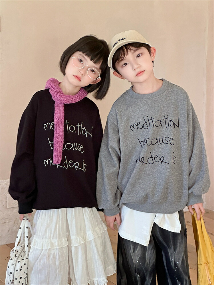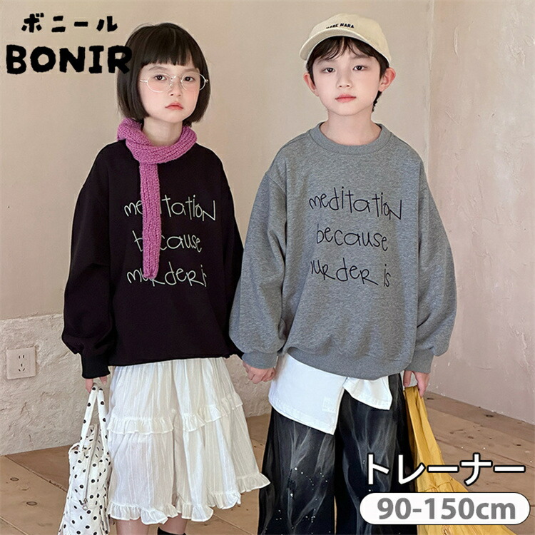 韓国子供服 トレーナー 裏起毛 グレー キッズ ベビー マタニティ 豊富 グレー 黒 90 100 110 120 130 140 150
