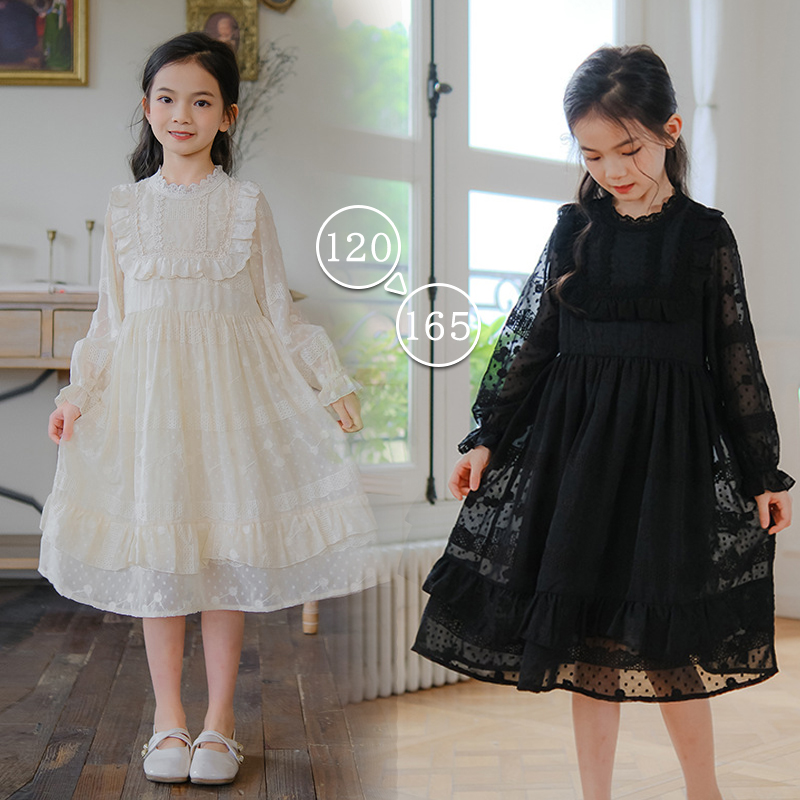 ワンピース 長袖 長袖ワンピース シフ キッズ ベビー マタニティ 37%Off 120 130 140 150 160 165 オフホワイト ブラック