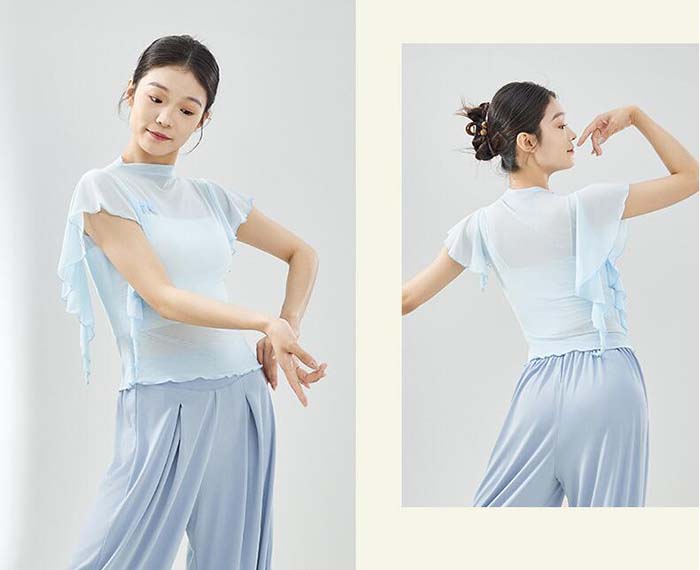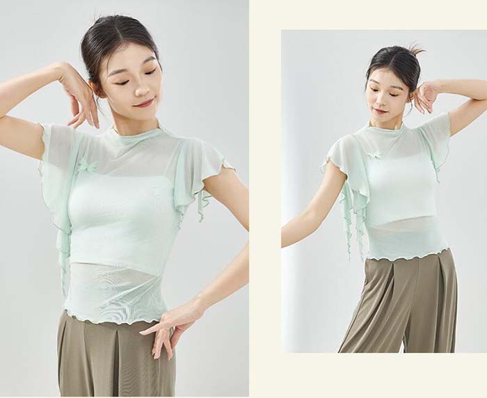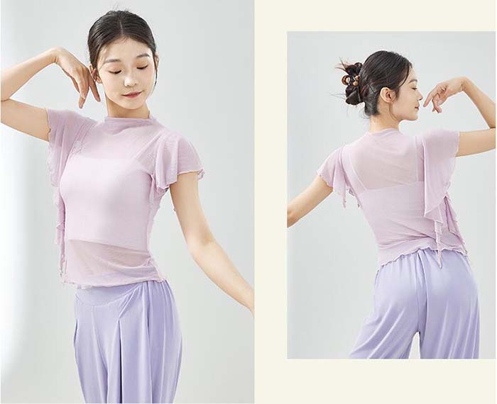 古典ダンス衣装 トップス フレア袖 ス S M L XL 杏色 ブラック パープル ピンク ブルー グリーン