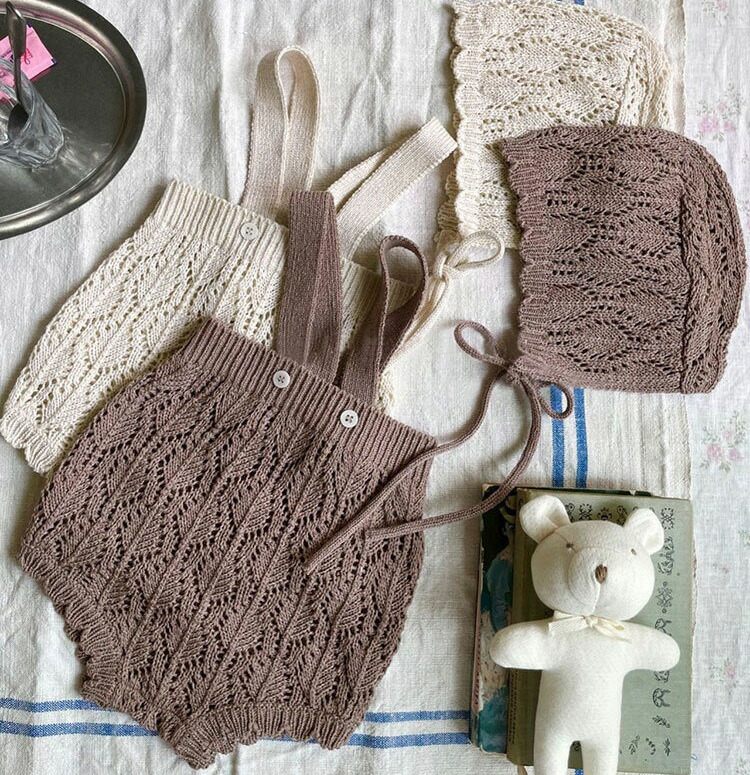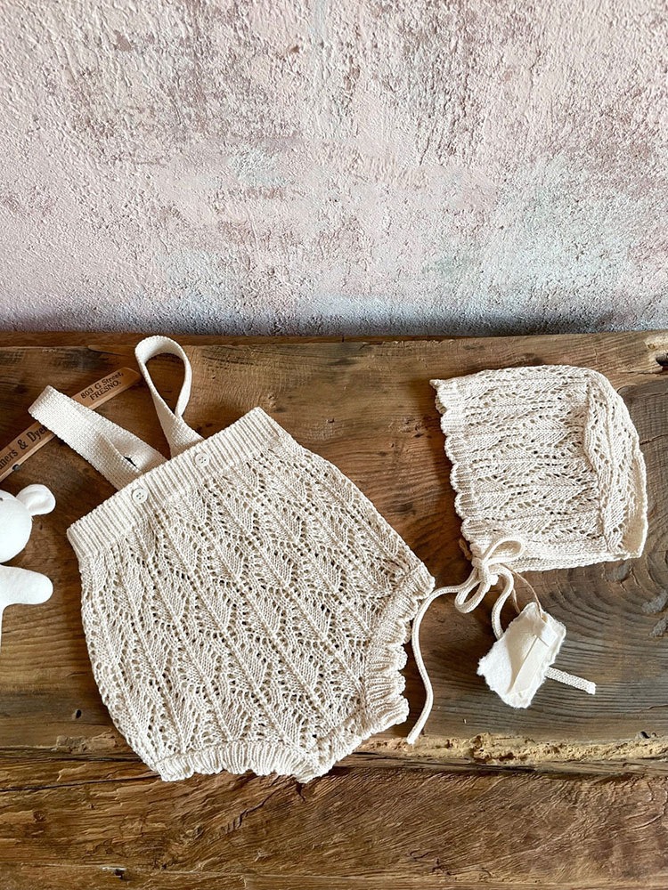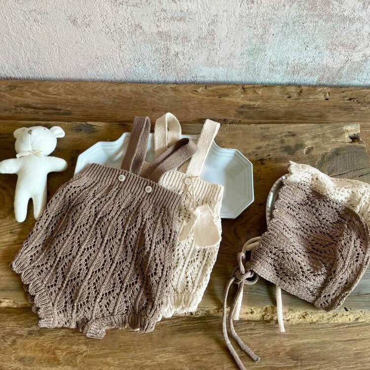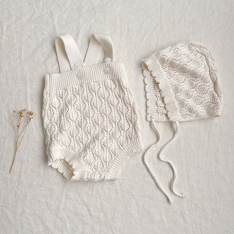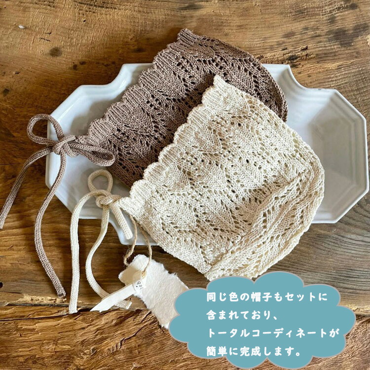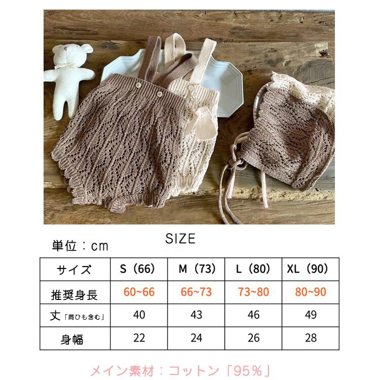 帽子付き サスペンダーニットロンパース ベビー ベビー服 ファッション カバーオール ロンパース 特集 オフホワイト カーキ色 66cm 73cm 80cm 90cm