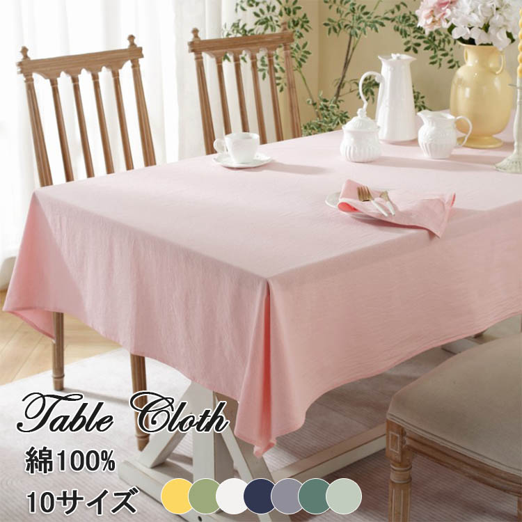 テーブルクロス 綿100% しわ加工 配膳用品 キッチンファブリック テーブルクロス 早い者勝ち!ポイントUP ピンク イエロー グレー グリーン ダークグリーン ミントグリーン ネイビー ホワイト 60x60cm 90x90cm 100x135cm 120x120cm 135x135cm 135x180cm 135x200cm 135x220cm 135x250cm 135x300cm