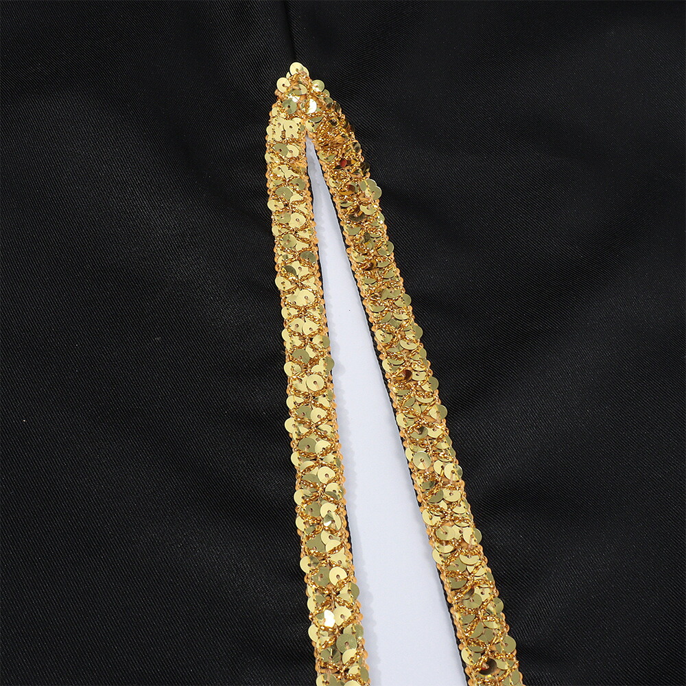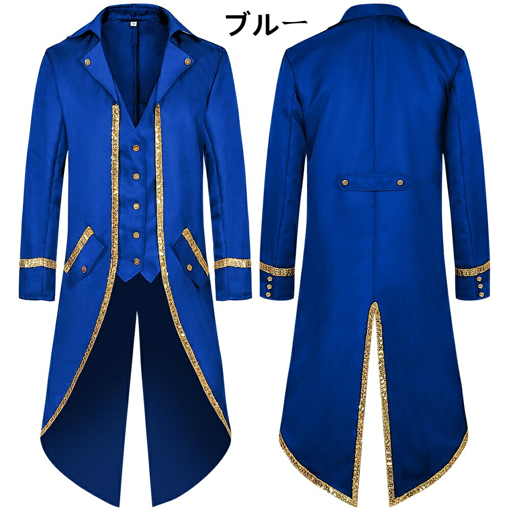 メンズコスプレジャケット 舞台衣装 ロング ゴールドスパンコール裾 燕尾服 レトロスチームパンク 無地 欧風 ヨーロッパ風 王子様 貴族 マジシャン ステージ衣装 パーティー 舞台劇 学園 ハロウィン