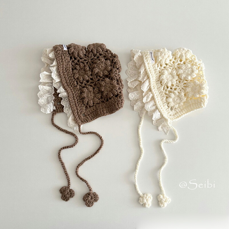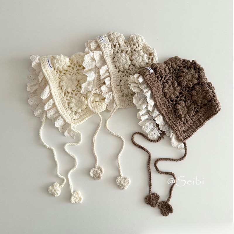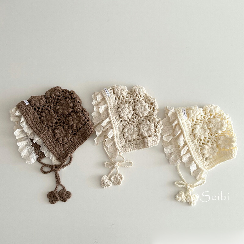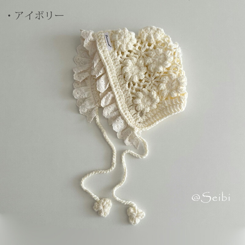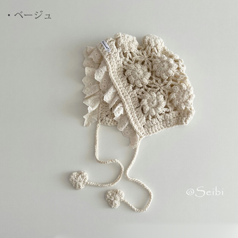 ニットボンネット レース フリル 韓国 キッズ ベビー マタニティ 続々入荷中 ブラウン ベージュ アイボリー