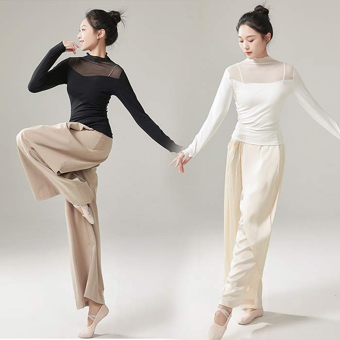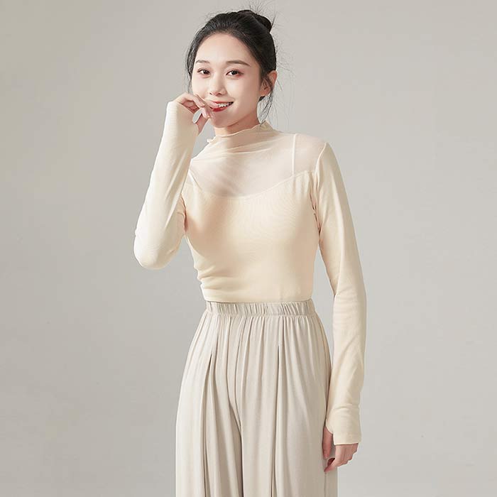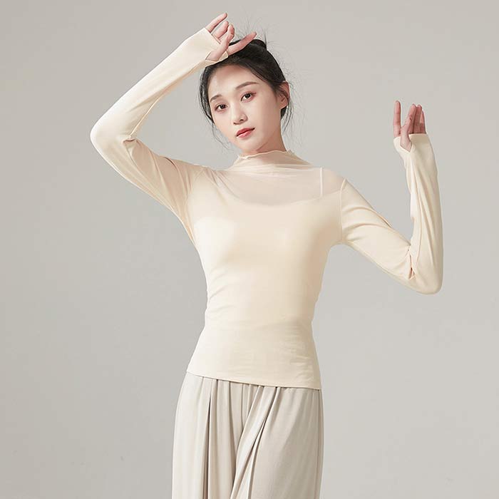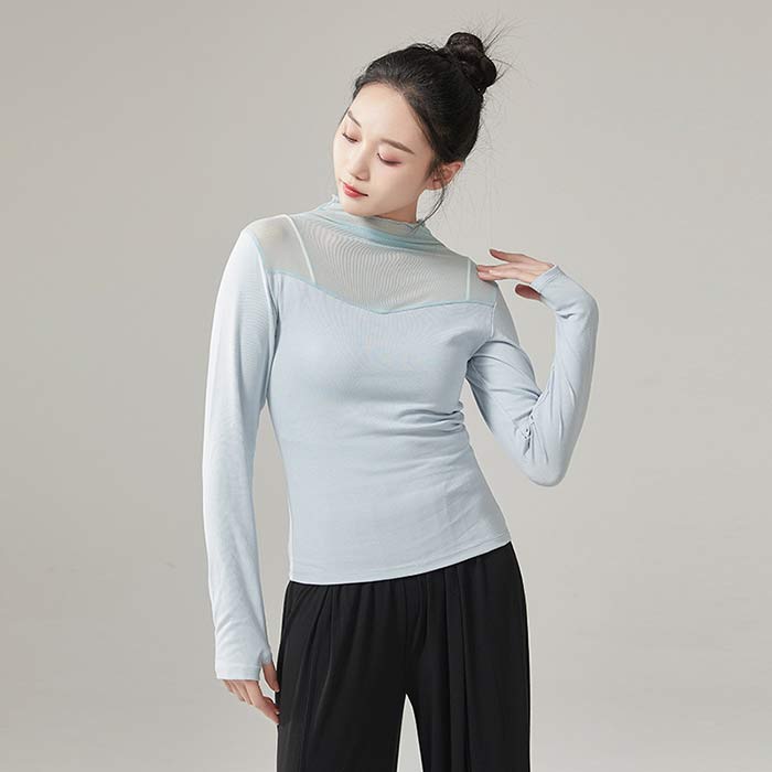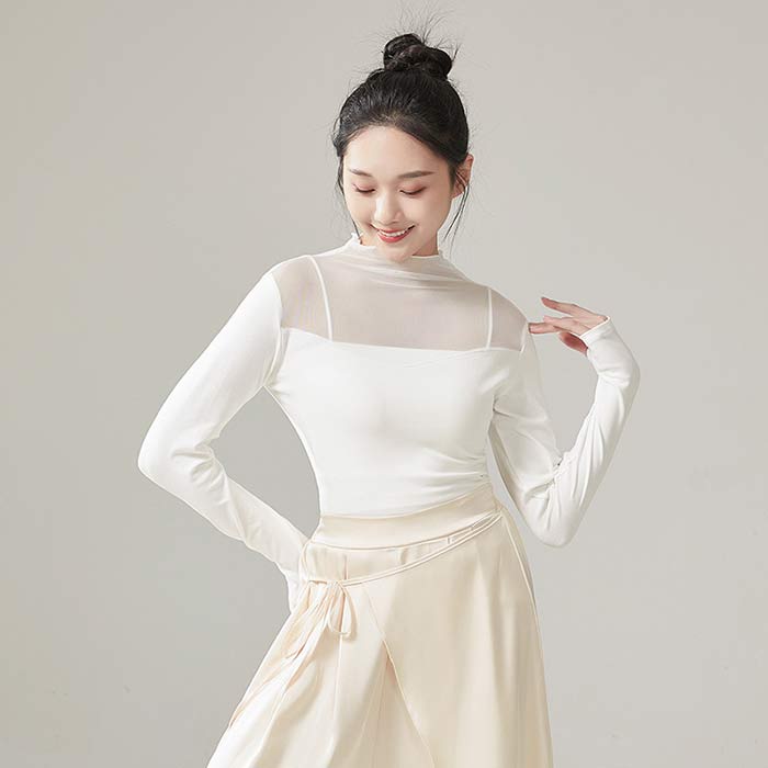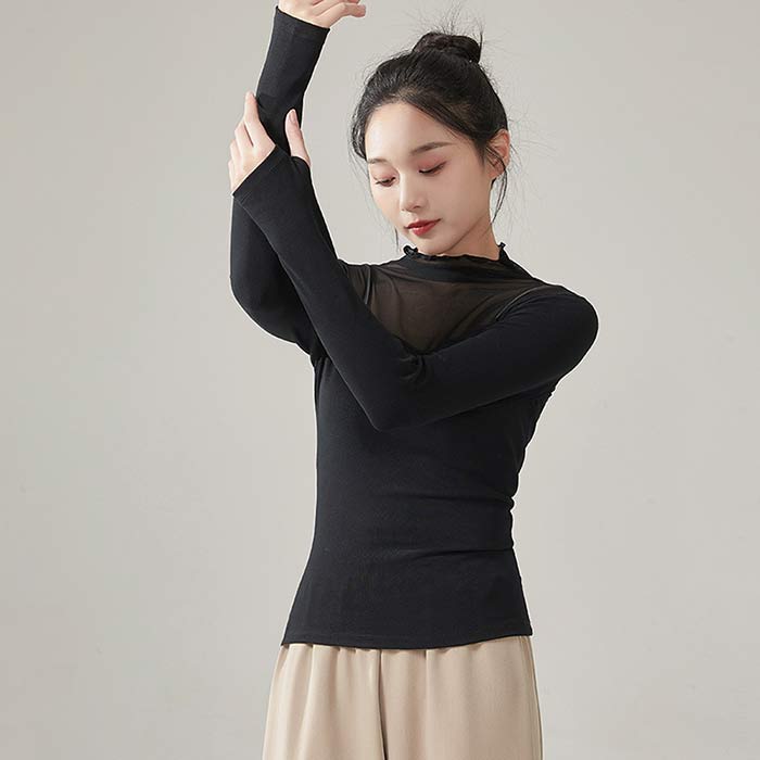 バレエ トップス 長袖 シースルー 大 ブラック ホワイト 杏色 ライトブルー S M L XL