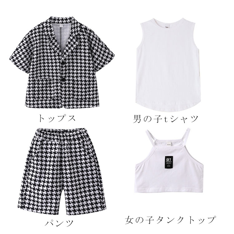 千鳥柄 ダンススーツ キッズダンス衣装 体操 ダンス 社交ダンス ウェア 通販 女の子タンクトップ 男の子tシャツ トップス+パンツ 女子3点セット 男子3点セット 110 120 130 140 150 160 170 180