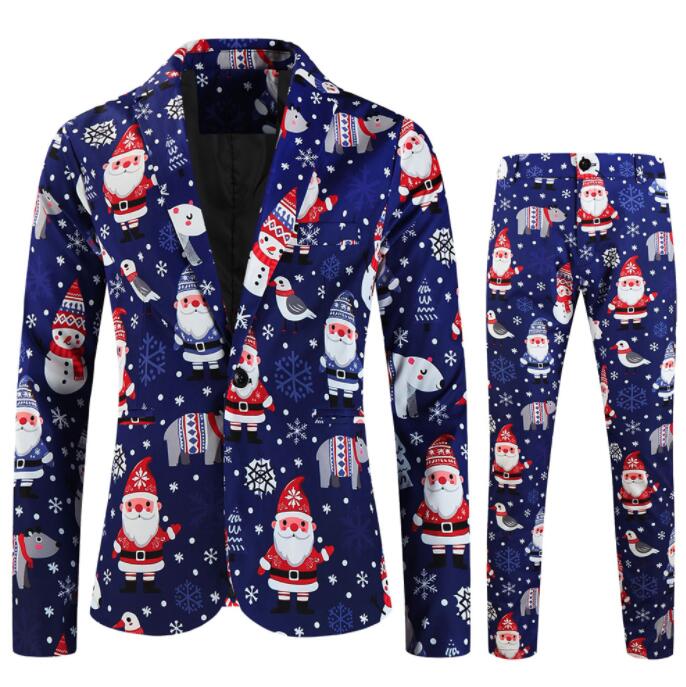 メンズクリスマススーツ 男性 クリスマス コスプレ衣装 雪だるま柄 サンタ柄 雪柄 スーツ クリスマス元素 ジャケット ベスト パンツ メンズ 仮装 舞台 シンガー カラオケ 魔術 演出服