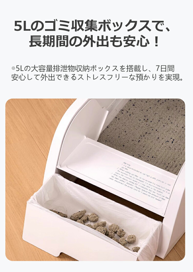 猫 トイレ 全自動猫トイレ ねこ自動トイレ 大型 5L 大容量 開放式 自動清掃機能付き 臭わない 多頭飼い 赤外線センサー安全 専用アプリ APP IOS Android対応 日本語説明書付き