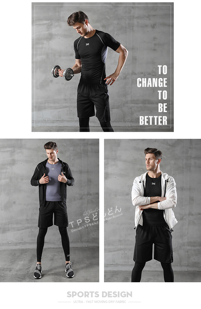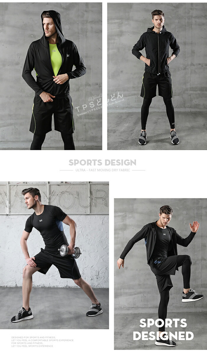 コンプレッションウェア メンズ 5点セット ジムウエア スポーツウェア ランニングウェア トレーニングウェア 上下 長袖 半袖 おしゃれ 7カラー6サイズ ランニング ショートパンツ レギン パーカー