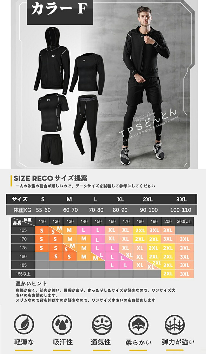 コンプレッションウェア メンズ 5点セ スポーツ アウトドア 期間限定ポイントUP! カラーB カラーD カラーE カラーG カラーH カラーI S M L XL 2XL 3XL
