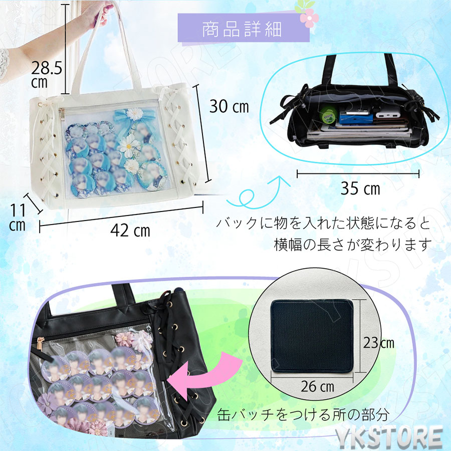痛バッグ トート おしゃれ 痛バ ショ バッグ 小物 ブランド雑貨 期間限定割引クーポン ホワイト ブラック ライトブルー パープル ピンク レッド