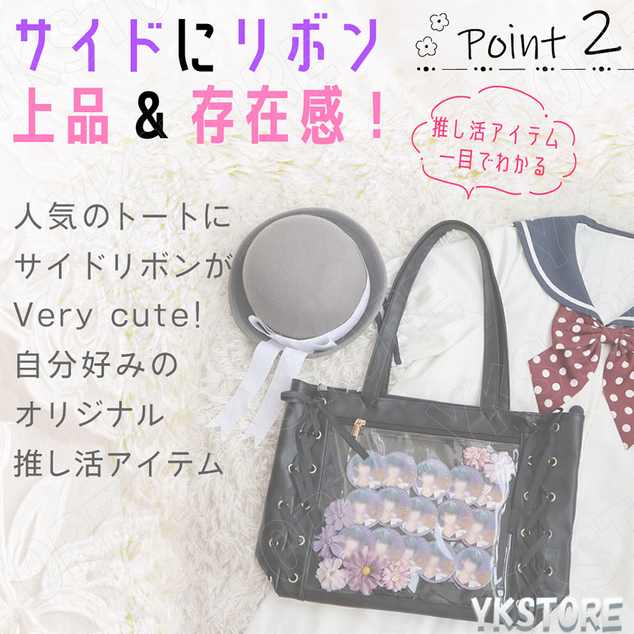 痛バッグ トート おしゃれ 痛バ ショルダー 大きめ 赤 黒 推し活 グッズ ヲタ活 推しカラー 推し色 b5 クリアバッグ 肩掛け レディース メンズ 透明 ファスナー イエロー 大き トートバッグ