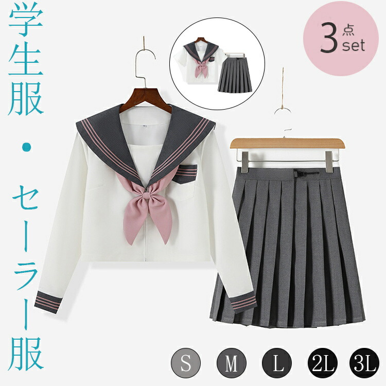 セーラー服 コスプレ ピンク 三本線 レディースファッション 新作 長袖セット 短袖セット S M L LL LLL