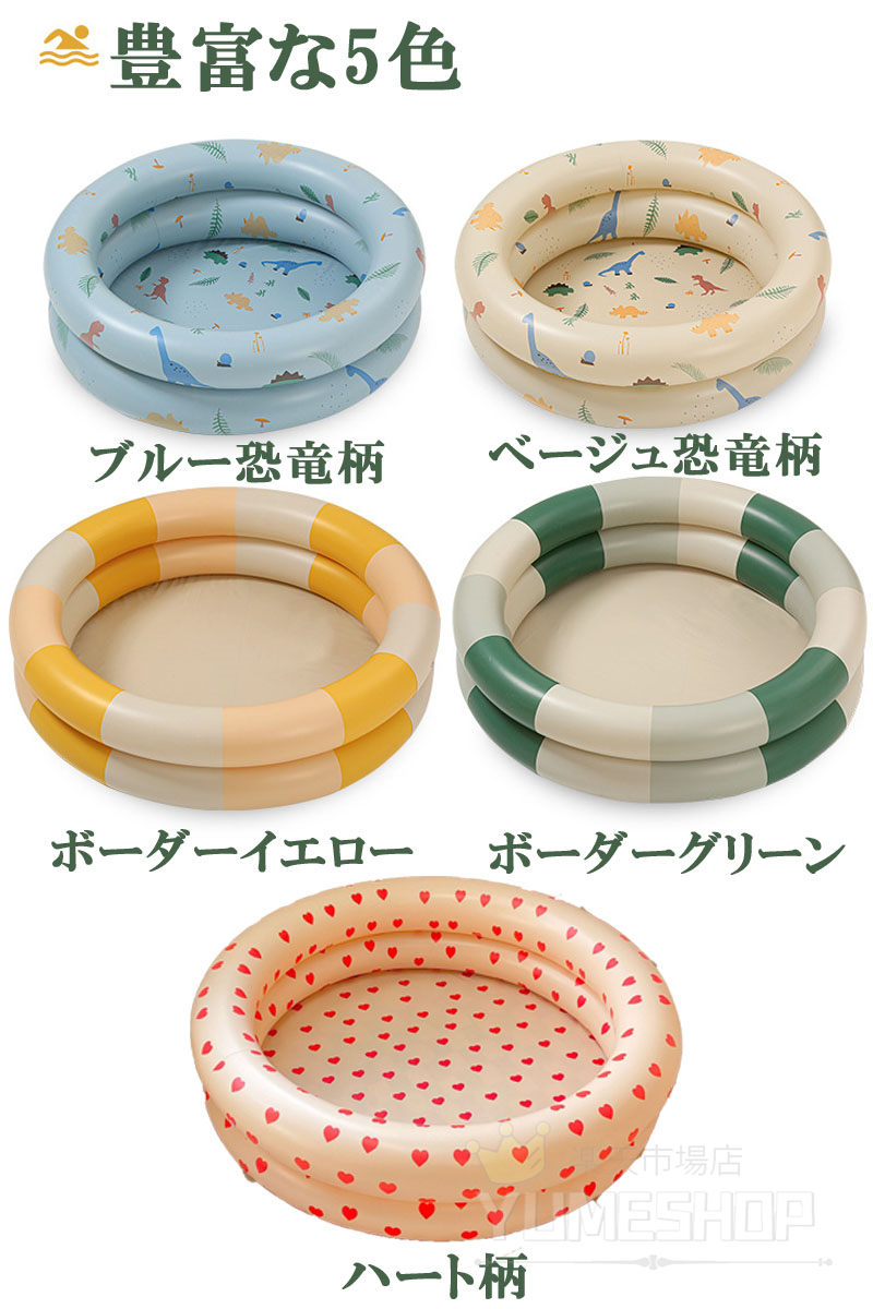 ベビープール プール ビニールプール おもちゃ プール 水遊び プール 豊富 ブルー恐竜柄 ベージュ恐竜柄 ボーダーイエロー ボーダーグリーン ハート柄 90#(460g) 120#(720g) 150#(1020g)