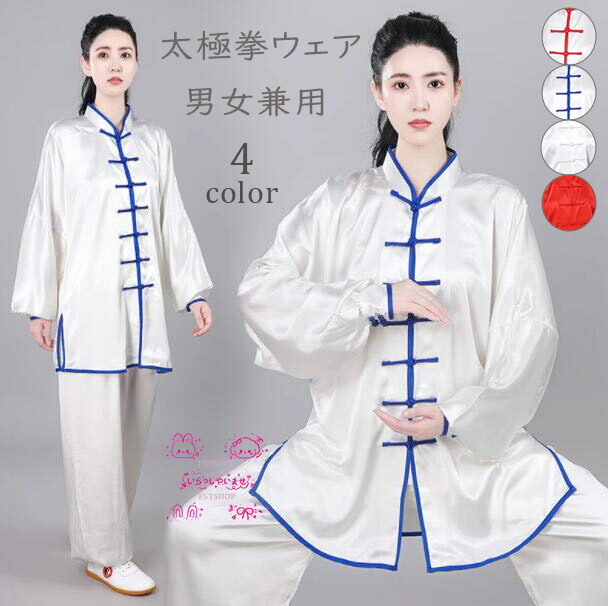 太極拳服 チャイナ服 太極拳ウェア 上 スポーツ アウトドア 期間限定ポイントUP! 白藍 白赤 レッド ホワイト XXS XS S M L XL XXL XXXL