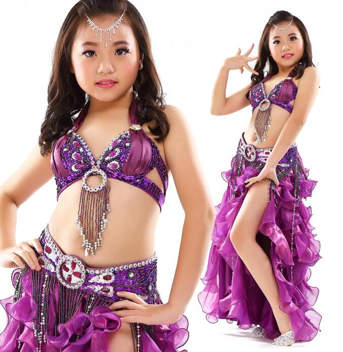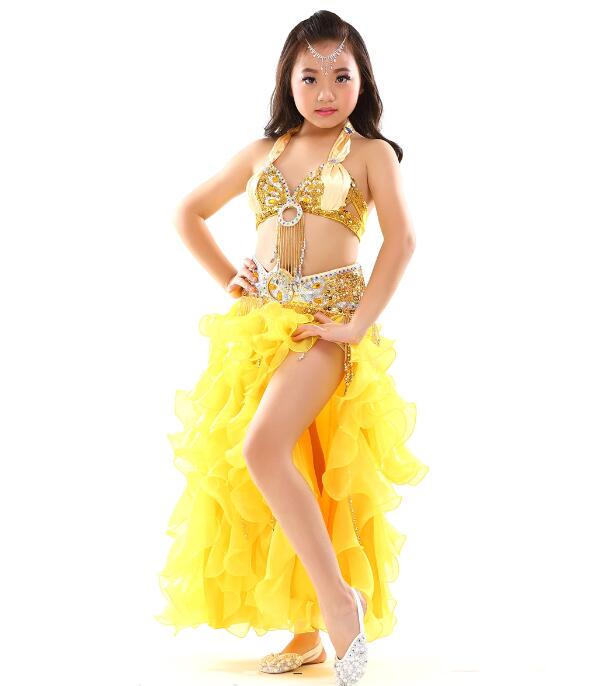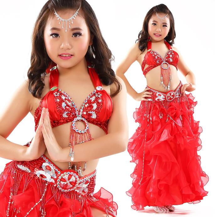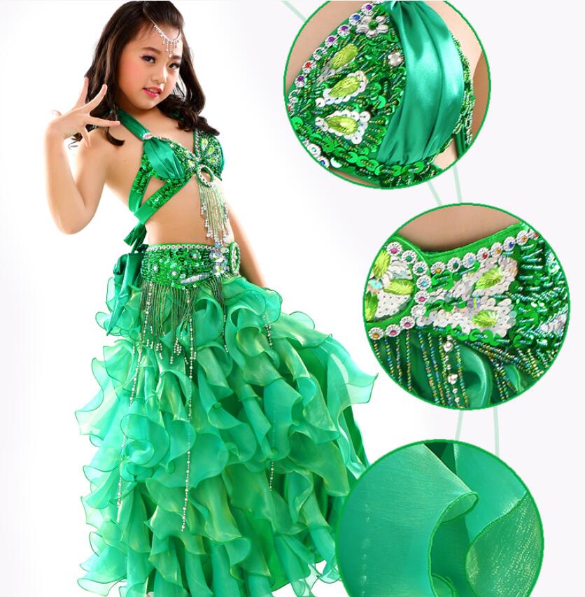 高質ダンス衣裳 子供ベリーダンス衣装 体操 ダンス ベリーダンス 衣装セット 人気 2点セット 3点セット グリーン イエロー ホワイト レッド ローズ サファイア ライトブルー パープル