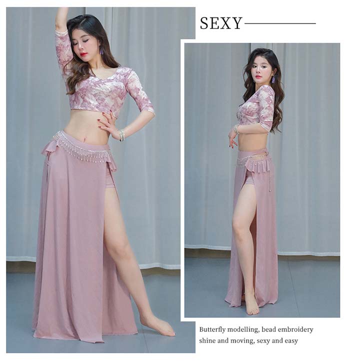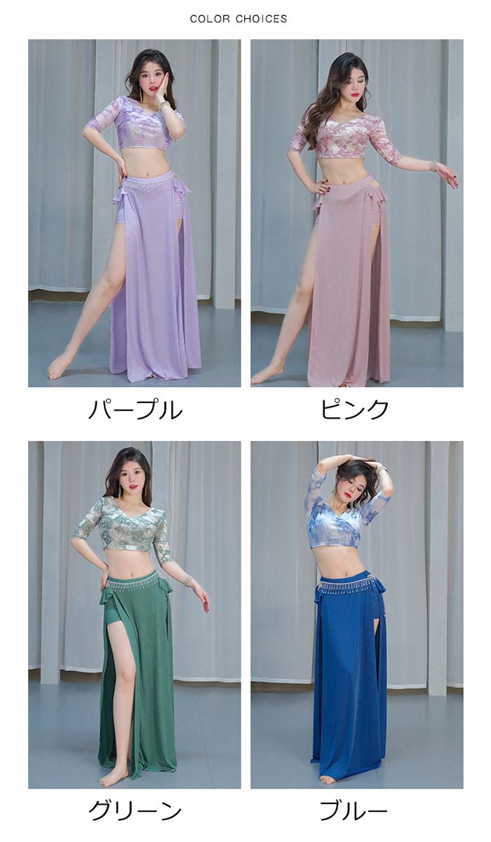 ベリーダンス レッスン着 セットアップ 体操 ダンス ベリーダンス 衣装セット 人気 グリーン ピンク ブルー パープル M L XL
