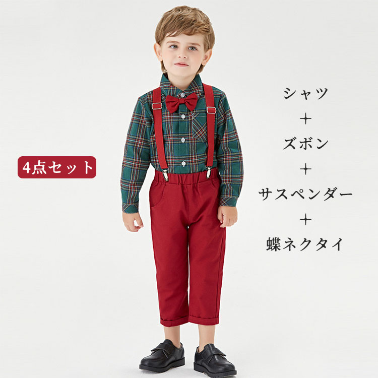 クリスマス 4点セット フォーマルスー キッズ ベビー マタニティ 豊富な品揃え カラーA(グリーンシャツ) カラーB(レッドシャツ) 70# 80# 90# 100# 110# 120# 130# 140# 150# 160#