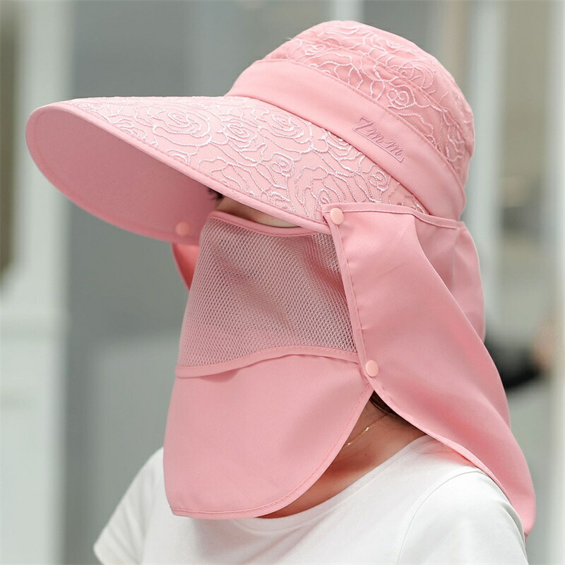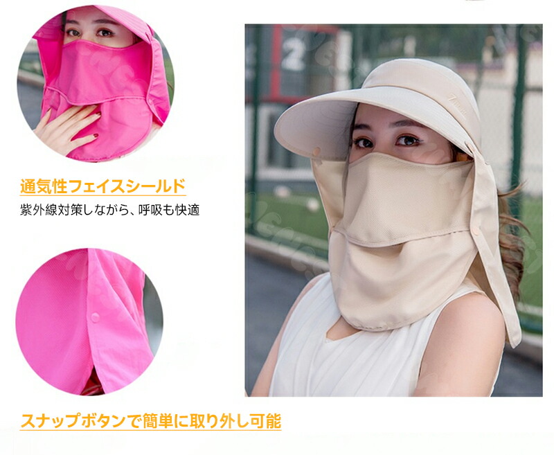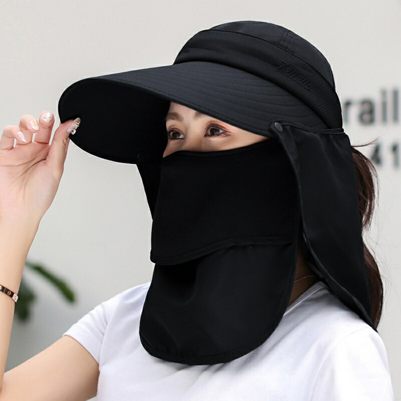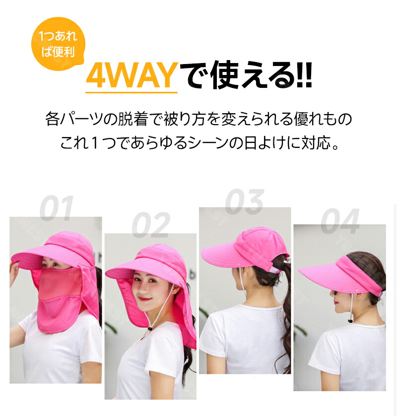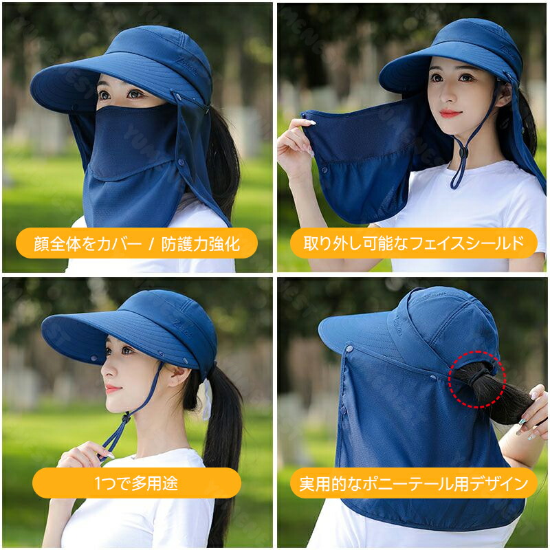 日除け帽子 4way UVカット 紫外線対策 日焼け防止 グッズ 春 夏 秋 日よけ 帽子 農作業 フェイスカバー 水分補給 ネックカバー キャップ サンバイザー レディース UPF50+ 4way 折りたたみ 収納 ボタン取り外し 顎紐 つば広 無地 スポーツ