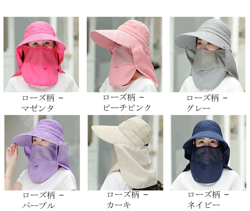 日除け帽子 4way 日焼け防止 紫外 バッグ 小物 グレー ピンク ベージュ パープル ブルー ネイビー ピーチピンク マゼンタ ブラック ローズ柄 - ピーチピンク ローズ柄 - カーキ ローズ柄 - グレー ローズ柄 - パープル ローズ柄 - マゼンタ ローズ柄 - ネイビー