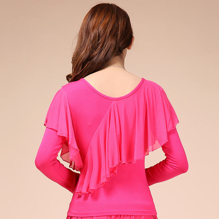 社交ダンス トップス 胸元フリル 長袖 体操 ダンス 社交ダンス ウェア 通販 レッド ローズ ブラック グリーン M L XL XXL 3XL 4XL