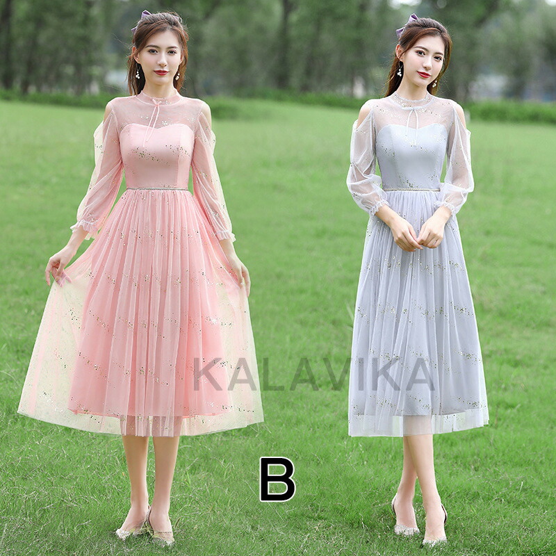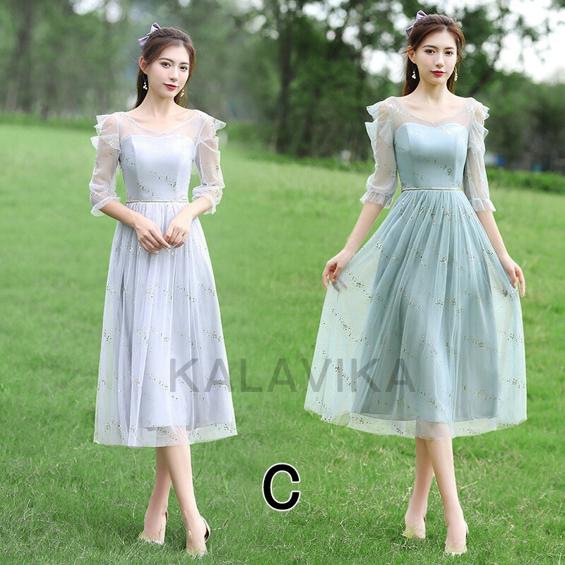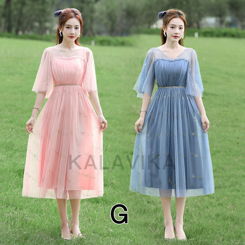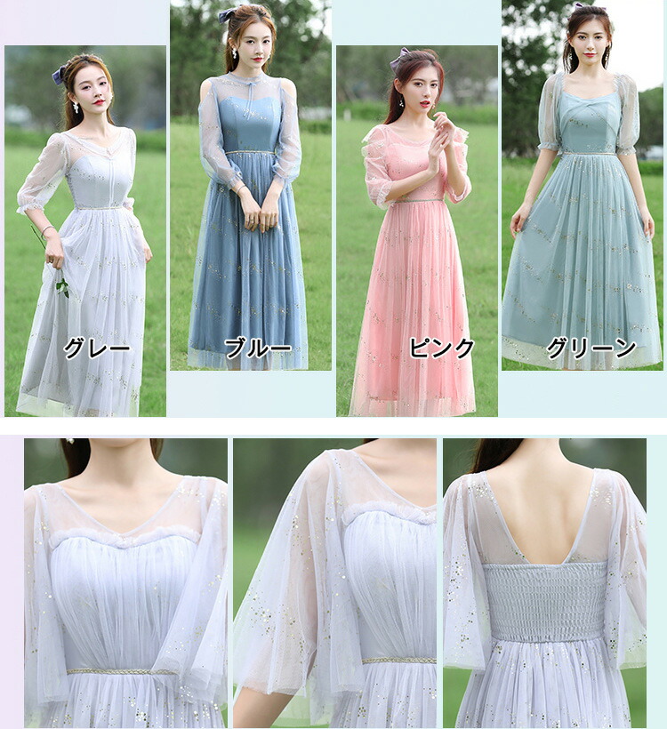 ドレス ブライズメイド ドレスフォーマ レディースファッション 期間限定割引クーポン グレー ピンク ブルー グリーン A B C D E F G