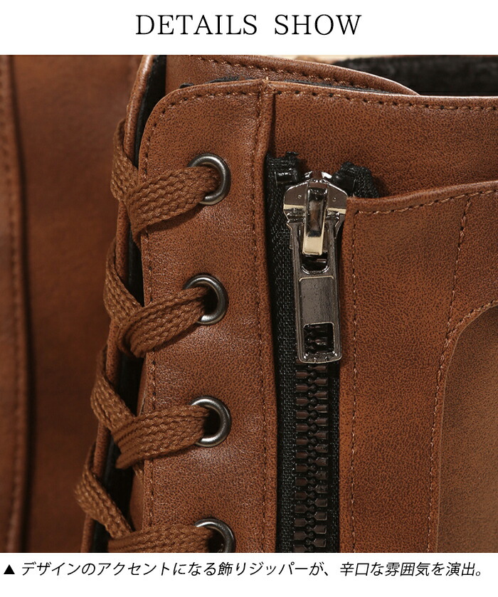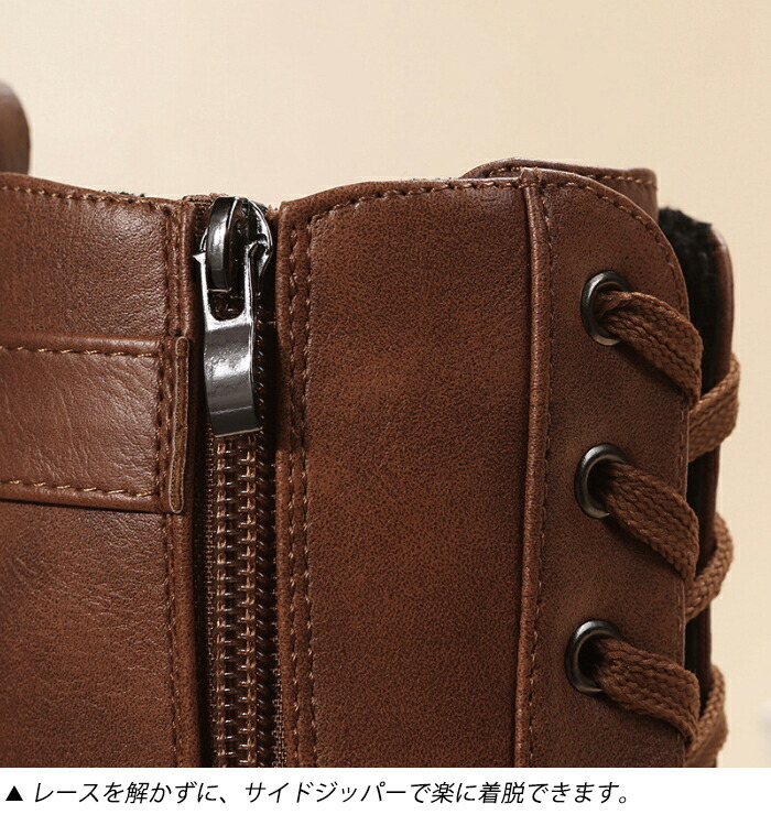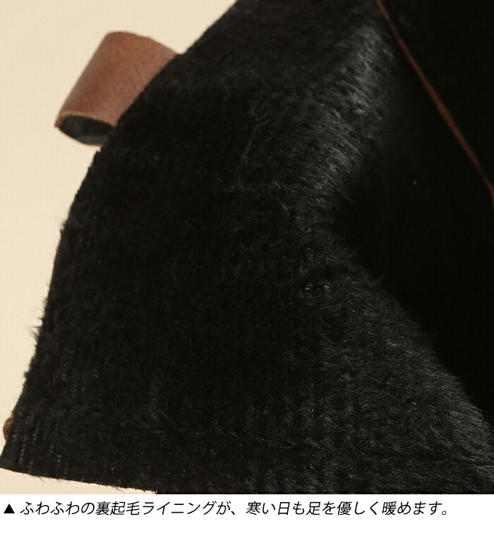 内側は柔らかな裏起毛素材で、履いた瞬間からふんわり暖かく、寒い日のお出かけも安心です。編み上げデザインはそのままに、内側のサイドジップで脱ぎ履きは楽々。