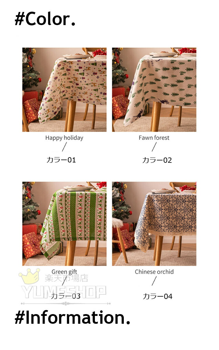 テーブルクロス クリスマス用 北欧 長 キッチン用品 食器 調理器具 早い者勝ち!ポイントUP カラー01 カラー02 カラー03 カラー04 60*60CM 値段:1680円 90*90CM値段:1900円 90*140CM 値段:2300円 100*160CM値段:2400円 110*110CM値段:2500円 140*140CM値段:2600円 140*180CM値段:2800円 140*200CM値段:3000円 140*220CM値段:3200円 140*240CM値段:3300円 140*260CM値段:3400円 140*300CM値段:3500円