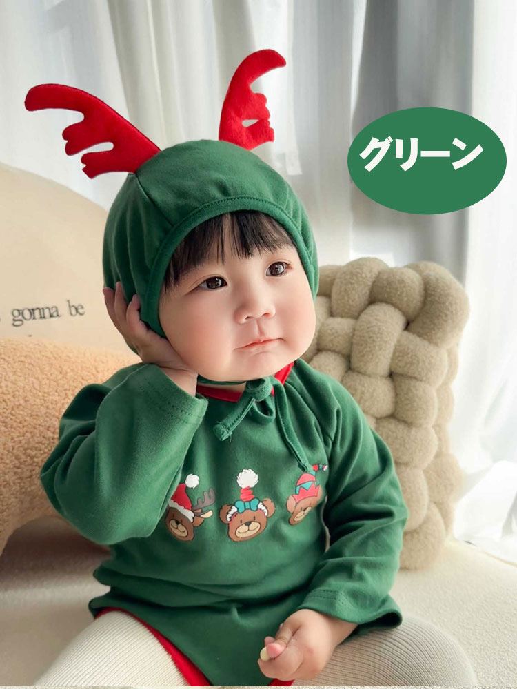 2点セット クリスマス衣装 ベビー服 ベビー ベビー服 ファッション カバーオール ロンパース 通販 レッド グリーン 66cm 73cm 80cm 90cm