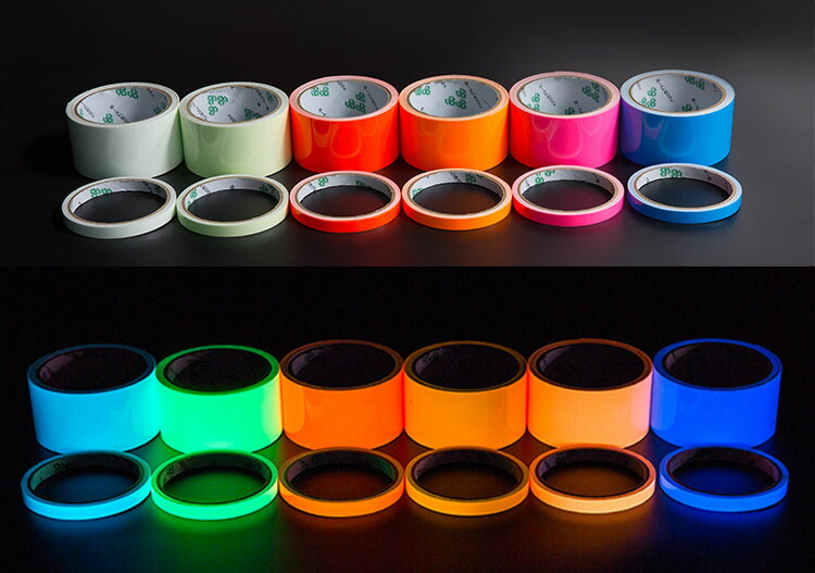 2巻セット 蓄光テープ 幅5cm*長さ 夜光-緑 夜光-空色 夜光-金茶 夜光-杏色 夜光-橙色 夜光-青
