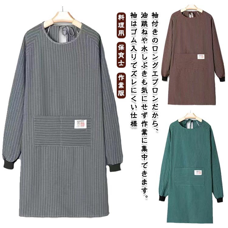 割烹着 かっぽう着 エプロン 長袖エプ キッチン用品 食器 調理器具 49%Off グレー コーヒー グリーン レッド